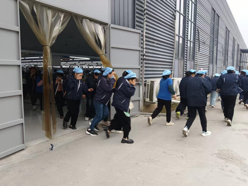 在車間主任朱瑞玲的統(tǒng)一指揮下,消防演習(xí)有序展開。各班組長嚴格按照消防安全應(yīng)急演練預(yù)案,以最快的速度,組織員工沿安全通道緊急疏散。