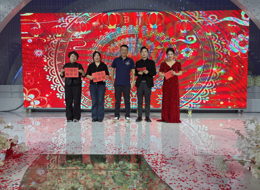 抽獎互動環(huán)節(jié)貫穿晚會全程,成為點(diǎn)燃現(xiàn)場氣氛的“催化劑”。五輪抽獎設(shè)置了保溫杯禮包、榮耀電子手環(huán)、格蘭仕微波爐、榮耀平板電腦及華為Mate80手機(jī)等豐厚獎品,覆蓋30名鼓勵獎、10名三等獎、6名二等獎、3名一等獎及1名特等獎。從各車間主任、部長到廠長、總經(jīng)理,再到集團(tuán)董事長,各級領(lǐng)導(dǎo)輪番上臺抽取幸運(yùn)兒,隨著中獎名單逐一揭曉,現(xiàn)場歡呼聲、喝彩聲此起彼伏,既讓員工感受到了企業(yè)的關(guān)懷與溫暖,也增強(qiáng)了團(tuán)隊(duì)的凝聚力與向心力。