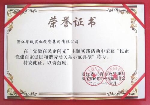自活動(dòng)開展以來,得到了各單位、各企業(yè)的積極響應(yīng),涌現(xiàn)出了一大批在促進(jìn)企業(yè)科學(xué)發(fā)展、助推民企創(chuàng)新轉(zhuǎn)型、構(gòu)建和諧勞動(dòng)關(guān)系、履行社會(huì)責(zé)任等方面的先進(jìn)典型。經(jīng)過認(rèn)真評(píng)審,省工商局、省民營(yíng)企業(yè)發(fā)展聯(lián)合會(huì)決定授予100家民企為 “民企黨建促進(jìn)和諧勞動(dòng)關(guān)系示范典型”,這次受到表彰的百家先進(jìn)黨建民企典型,無不是中國(guó)企業(yè)界的佼佼者。浙江華城實(shí)業(yè)投資集團(tuán)有限公司榜上有名,被光榮地授予“民企黨建促進(jìn)和諧勞動(dòng)關(guān)系示范典型”稱號(hào)。