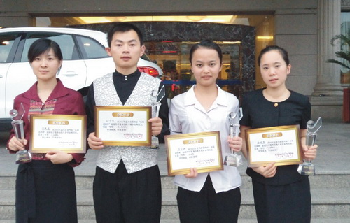 2011年8月16日,在嘉興富悅大酒店舉行的第四屆“禾城老酒杯”旅游飯店服務技能大賽圓滿落下了帷幕。本次大賽共有24支參賽隊伍,88名參賽者。華城集團下屬圣雷克大酒店共派四名選手參與。比賽內容包括理論考試、口試和技能操作三個部分,對飯店業(yè)員工的綜合素質進行了全面考核。最終,我店四名員工不負眾望,獲得了團體第二名的好成績。在個人單項比賽中,孫金躍獲調酒一等獎,金美娟獲西餐擺臺二等獎,汪佩霞、唐莉娜分別在中餐擺臺、中式鋪床中獲得三等獎。
