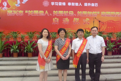 啟動儀式上,嘉興市委常委、宣傳部長、市文明委副主任陳越強(qiáng)介紹了嘉興市“關(guān)愛他人、關(guān)愛社會、關(guān)愛自然”志愿服務(wù)活動實(shí)施方案!瓣P(guān)愛他人、關(guān)愛社會、關(guān)愛自然”志愿服務(wù)隊授旗儀式同時舉行。嘉興市54家企事業(yè)單位向中國志愿服務(wù)基金會捐款110.7萬元。我公司黨總支副書記沈文英代表集團(tuán)公司參加了此次啟動儀式,同時我公司以及集團(tuán)公司旗下的平湖圣雷克大酒店也是這次啟動儀式上向中國志愿服務(wù)基金會捐款企業(yè)之一。