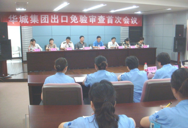 在首次會議上,省局陸金榮處長指出,出口商品免驗是國家質檢總局賦予優(yōu)質出口商品的最高榮譽,目前全國僅200多家,要求華城集團充分準備、認真對待,把審核作為一次深刻、全面的體檢;同時要求審核組始終保持認真負責態(tài)度對華城集團進行全面的檢查。嘉興局任金華局長對審核組的到來表示感謝和歡迎,并要求公司認真配合審核組的工作,真誠對待審核過程發(fā)現(xiàn)的問題,敢于暴露工作上的不足,把審核作為改進和提升的一次機會。