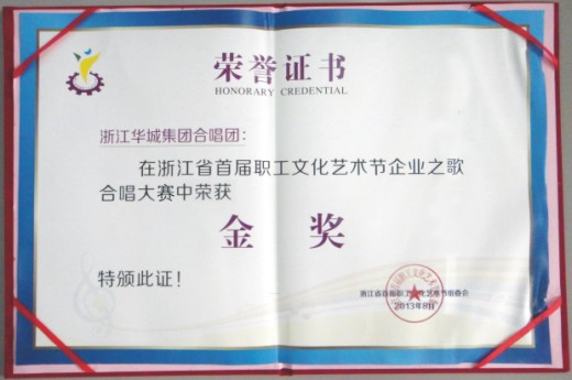 8月23日,浙江省首屆職工文化藝術節(jié)企業(yè)之歌合唱大賽在嘉興大劇院舉行,來自全省各地市、各系統(tǒng)工會選送的16支優(yōu)秀合唱團隊齊聚南湖,唱響企業(yè)之歌,用歌聲詮釋企業(yè)文化。我公司合唱團憑著《華城之歌》和《鴻雁》兩支參賽曲目,以出色的表演在16支合唱團隊中脫穎而出,摘得金獎。合唱團的優(yōu)秀表現(xiàn)得到此次比賽的評委之一、北京合唱協(xié)會會長左文龍的贊賞。他從專業(yè)的角度給予了點評:“浙江華城實業(yè)投資集團有限公司職工合唱團唱得非常整齊,女高音氣息不錯!
