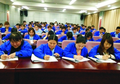 來源: 發(fā)布時間:2016-07-30 被閱讀:2569 4 月19日,在辦公大樓四樓一號會議室內,華城制衣52名員工興高采烈地從平湖職業(yè)中專老師那里接過了“二級服裝制作工”榮譽證書,發(fā)證單位是中國紡織工業(yè)聯(lián)合會,這是華城制衣今年第一批榮獲此項榮譽的員工。發(fā)證結束后,新一期服裝高級工培訓班正式開始,華城制衣縫制車間各小組186人參加了此次培訓,平湖職業(yè)高中姚玲英老師為大家認真、仔細地講解了有關內容,員工們都聽得津津有味、學得認認真真,不難看出此次培訓又一次極大地滿足了大家的求知欲。
