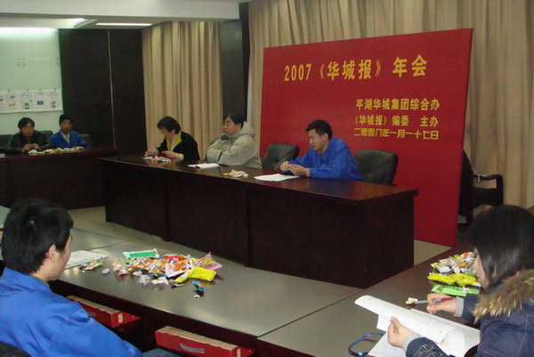1月17日,在公司四樓會議室召開《華城報》2007年度年會,共有30幾位通迅員代表參加。會上,《華城報》主編凌中強對2007度《華城報》的一些工作情況向與會代表做了祥細的匯報,并做了08年工作的一些具體布署。市文化館張德賢老師也應邀參加此次年會,并向各位代表做了一些指導性的講解!度A城報》做為華城文化的一個載體,起著承上啟下的作用。經(jīng)過全體編輯和廣大通迅員的共同努力,取得了一系列成績,便面對成績,廣大通迅員一致表示,今后一定要多學習,多鍛練,把《華城報》辦得更有特色,更具風格,更深入人心。