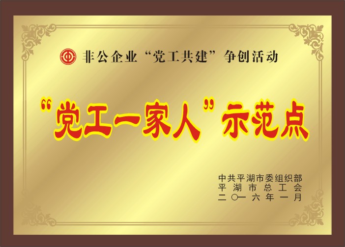 日前,在平湖市委組織部、平湖市總工會舉辦的非公企業(yè)“黨工共建”爭創(chuàng)活動中,平湖華城茂麓制衣有限公司以突出的黨建工作特色和亮點,被光榮地命名為“黨工一家人”示范點。