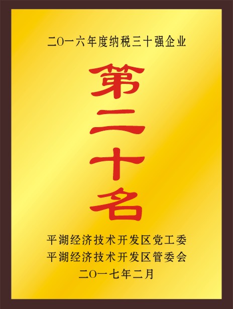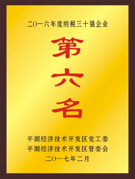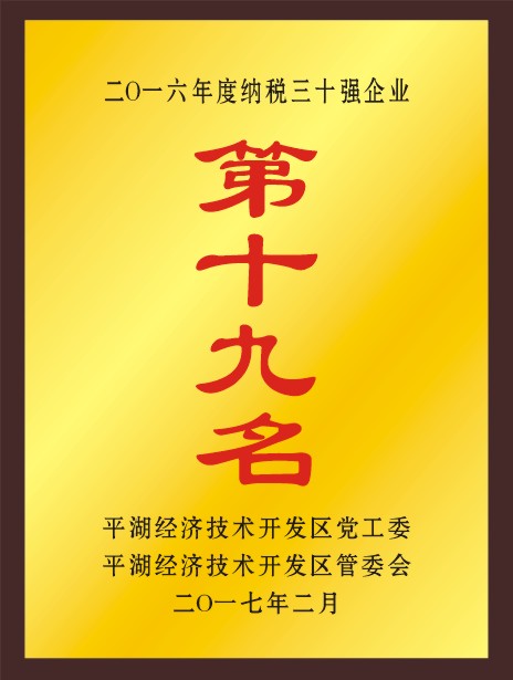 平湖華城衣歌路服飾有限公司榮獲平湖經(jīng)濟(jì)技術(shù)開(kāi)發(fā)區(qū)二0一六年度納稅三十強(qiáng)企業(yè)第十九名;