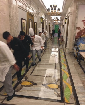 最后在酒店云會(huì)所KTV二樓包廂里模擬實(shí)操突發(fā)火災(zāi)情況時(shí)疏散逃生,第一滅火力量和第二滅火力量形成。