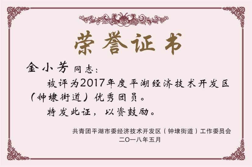 當(dāng)前位置:首頁 > 華城動(dòng)態(tài) 5月4日 下午,平湖經(jīng)開舉行紀(jì)念五四運(yùn)動(dòng)99周年大會(huì),重溫五四歷史,弘揚(yáng)優(yōu)良傳統(tǒng),共話青年使命,以青春的名義獻(xiàn)禮“五四”。會(huì)上表彰了一批優(yōu)秀團(tuán)員和團(tuán)組織,我公司員工金小芳喜獲“優(yōu)秀團(tuán)員”光榮稱號(hào)。