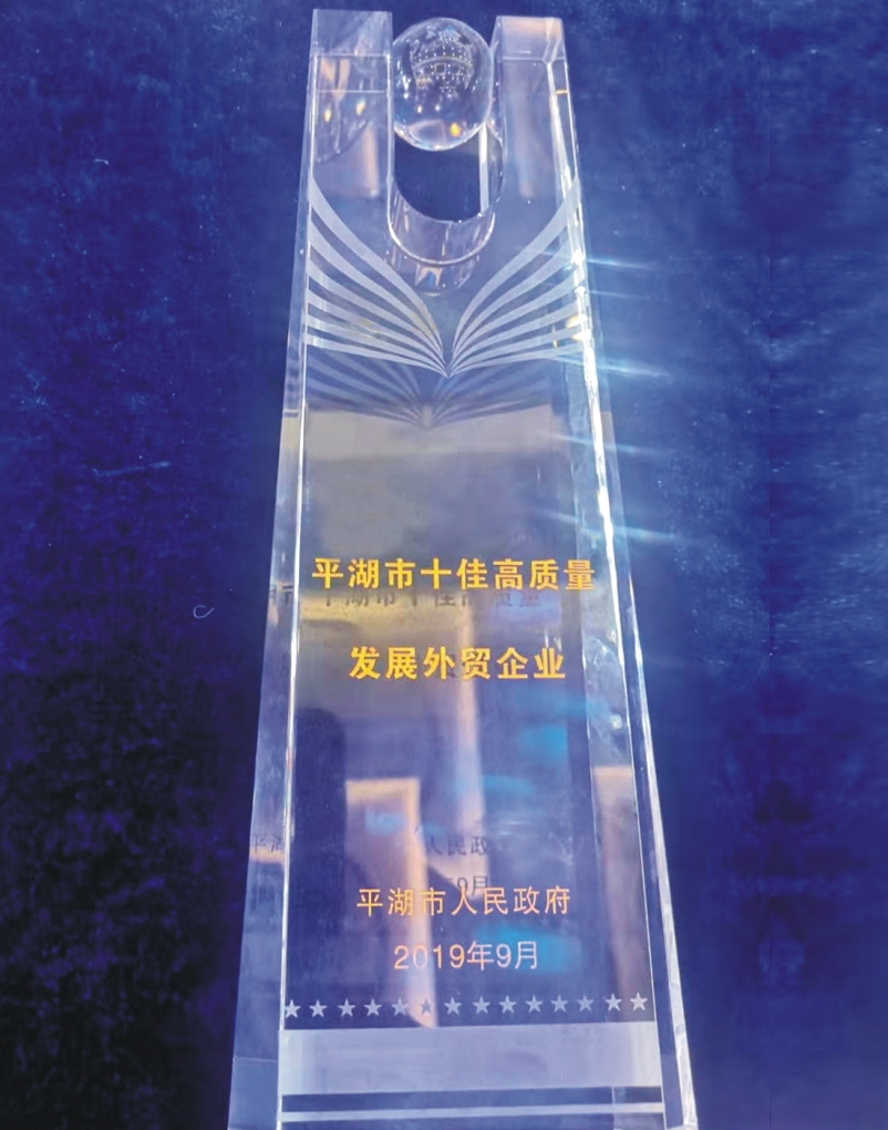 丹桂飄香秋意濃,金風(fēng)送爽喜報(bào)來(lái)。在剛剛舉行的2019中國(guó)•平湖西瓜燈文化節(jié)開幕式暨投資貿(mào)易洽談會(huì)上,平湖市委副書記、市長(zhǎng)仲旭東對(duì)“平湖市十佳高質(zhì)量發(fā)展外資企業(yè)”、“平湖市十佳高質(zhì)量發(fā)展外貿(mào)企業(yè)”進(jìn)行了頒獎(jiǎng)。華城茂麓制衣有限公司喜獲“平湖市十佳高質(zhì)量發(fā)展外貿(mào)企業(yè)”榮譽(yù)稱號(hào)。