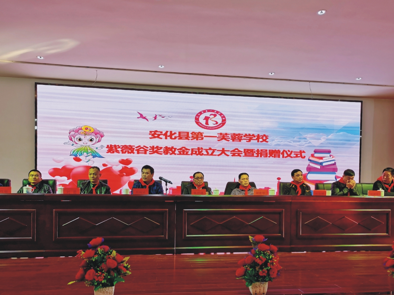 12月10日下午,“安化縣第一芙蓉學(xué)校紫薇谷獎教金成立大會暨捐贈儀式”在安化縣第一芙蓉學(xué)校舉行。安化縣副縣長胡能華、浙江華城實業(yè)投資集團(tuán)有限公司董事長張祥林、多凌控股集團(tuán)有限公司董事長張余林,安化縣教育局、縣城南區(qū)管委會、安化縣慈善總會等部門領(lǐng)導(dǎo)及全體師生和學(xué)生家長代表參加了捐贈儀式。
