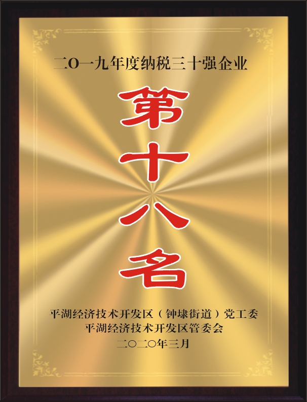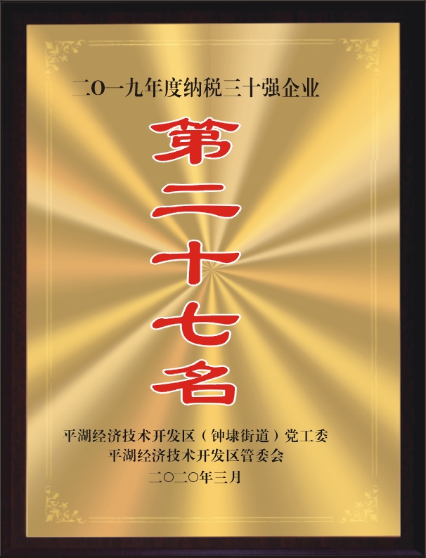 平湖市華城制衣股份有限公司位列平湖經(jīng)濟(jì)技術(shù)開(kāi)發(fā)區(qū)“2019年度納稅30強(qiáng)企業(yè)”第27名。