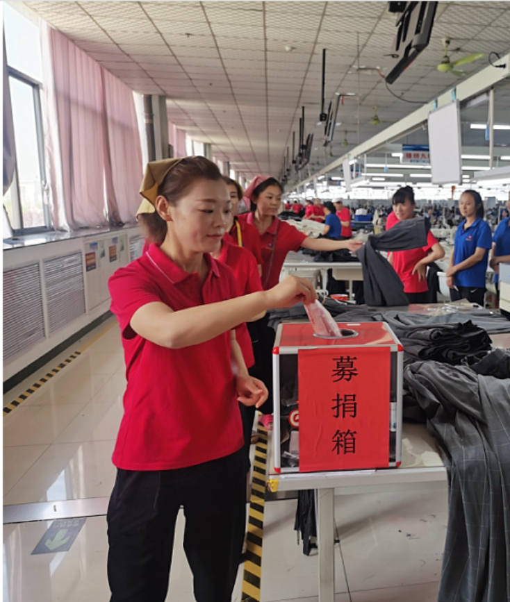 6月25日上午,“只要人人都獻(xiàn)出一點(diǎn)愛(ài),世界將變成美好的人間”……這首“愛(ài)的奉獻(xiàn)”回蕩在華城百靈每個(gè)角落。募捐活動(dòng)從縫制車(chē)間開(kāi)始,現(xiàn)場(chǎng)由公司領(lǐng)導(dǎo)和車(chē)間管理人員帶頭捐出自己的一份愛(ài)心。然后是每個(gè)部門(mén)、每組員工依次有序捐款。有捐100元、500元、1000元的;有捐5元、10元、20元的,無(wú)論捐出多少,都代表我們一份實(shí)實(shí)在在的愛(ài)。捐款也許數(shù)額不大,但我們堅(jiān)信,愛(ài)心會(huì)升起一道神圣的光環(huán),給她溫暖,給她勇氣,助她戰(zhàn)勝困難,重新健康地生活和工作。