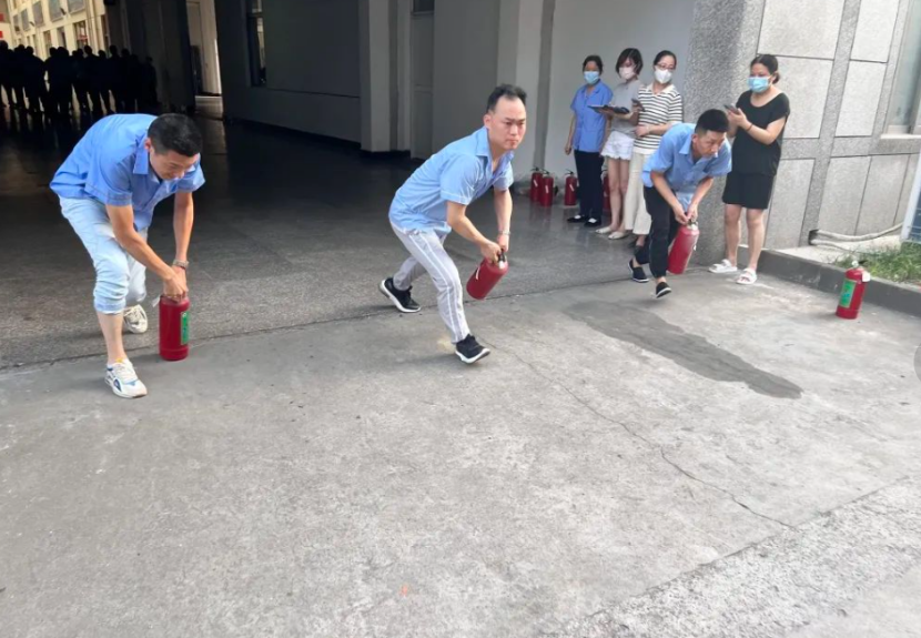 滅火比賽:現(xiàn)場距起跑線十米遠處,每隊都擺放了一個滅火器,前面是剛剛被點燃的油桶。每隊各派出一名隊員,聽到吳部長一聲令下,從起跑線出發(fā),跑到十米遠處,拿起滅火器,對準油桶滅火。幾名工作人員,認真仔細地計時記錄?,各隊選手在競賽中英姿煥發(fā),活力無限,動作熟練。拿起滅火器,拔掉插銷,對準火源,一頓操作猛如虎,火一下子被滅掉了。平時的消防知識宣傳學習,以及每年兩次的消防演練,讓員工們掌握了熟練的滅火技巧,此時都得到了充分的發(fā)揮。
