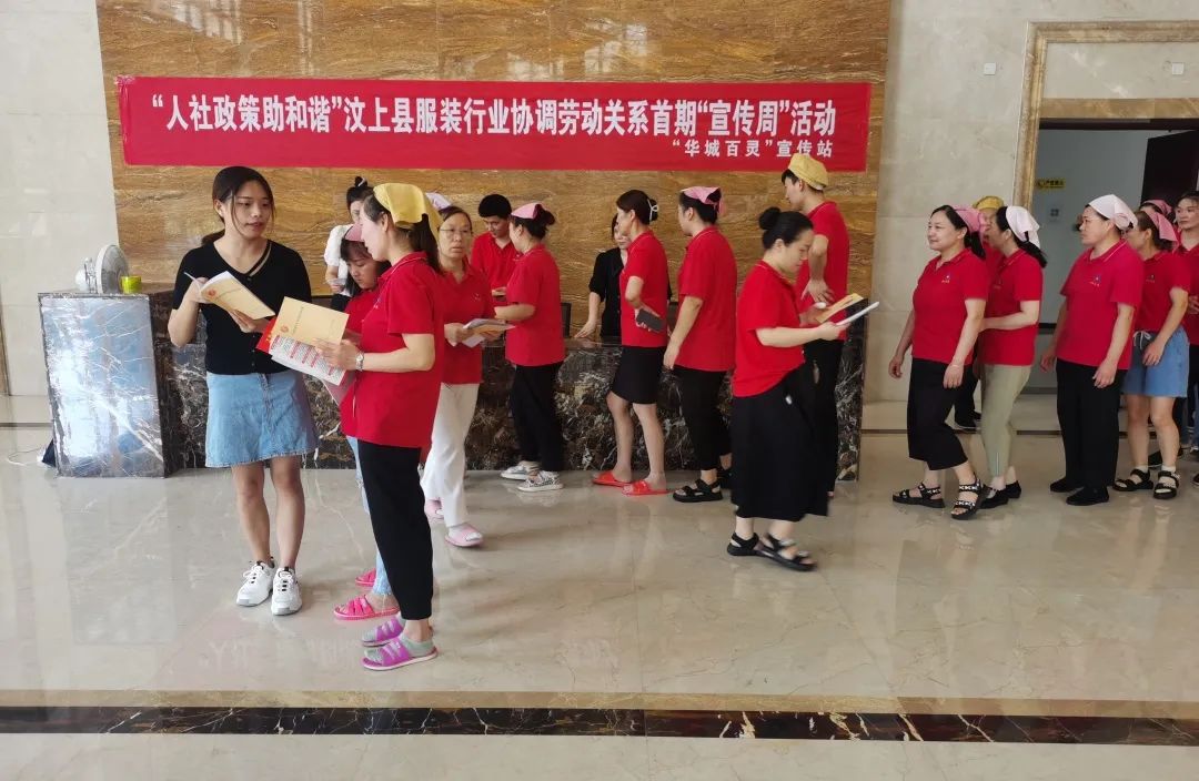 活動中,華城百靈配合人社局和服裝商會工作人員通過懸掛宣傳橫幅、發(fā)放宣傳資料、現(xiàn)場接受咨詢等方式全方位、多角度向職工宣傳勞動保障法律法規(guī)和維護勞動權益的政策措施等。