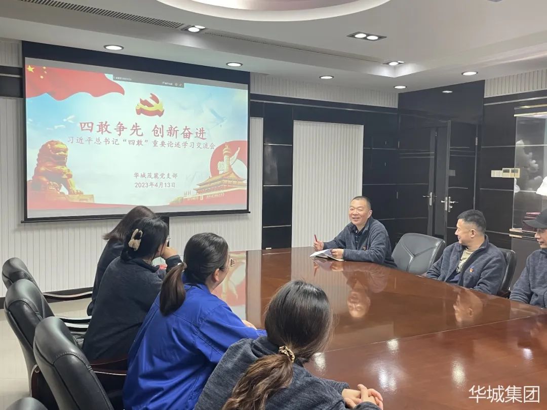 當(dāng)前位置:首頁 > 華城動態(tài)為深入學(xué)習(xí)貫徹黨的二十大精神,持續(xù)深化黨建引領(lǐng)作用,進(jìn)一步提升黨員黨性修養(yǎng),不斷增強(qiáng)黨組織凝聚力和敢為、敢闖、敢干、敢首創(chuàng),弘揚(yáng)“四敢”精神,汲取奮進(jìn)力量。黨委各支部就“四敢”精神重要論述分別召開支部黨員會議學(xué)習(xí)討論。戰(zhàn)斗力,4月13日,華城集團(tuán)黨委開展“追尋紅色記憶”主題黨日活動。一百余位黨員參加活動。