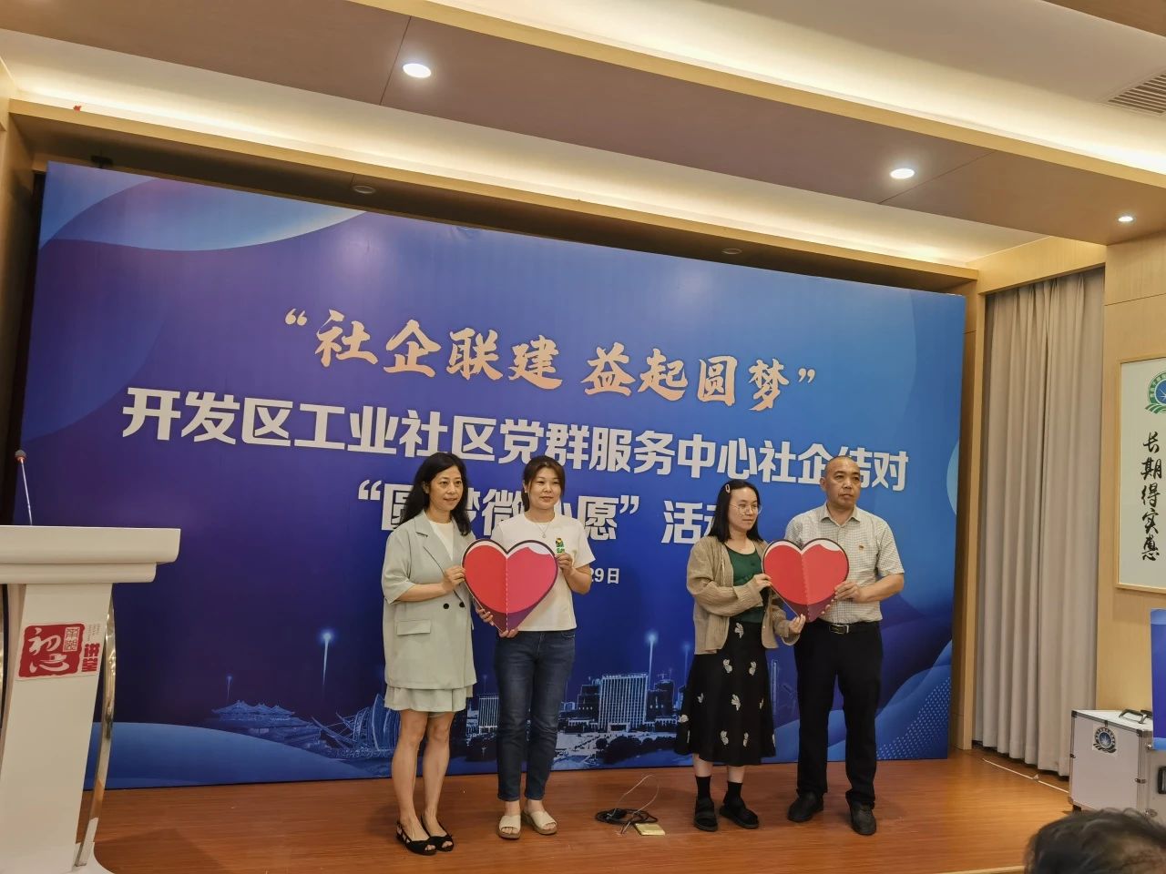 6月29日下午,在開發(fā)區(qū)工業(yè)社區(qū)黨群服務(wù)中心發(fā)起的“社企聯(lián)建 益起圓夢”活動中,我公司現(xiàn)場與西林寺社區(qū)結(jié)對,通過社區(qū)搭建的關(guān)愛橋梁,以認(rèn)領(lǐng)微心愿的方式,給社區(qū)特殊群體送溫暖。
