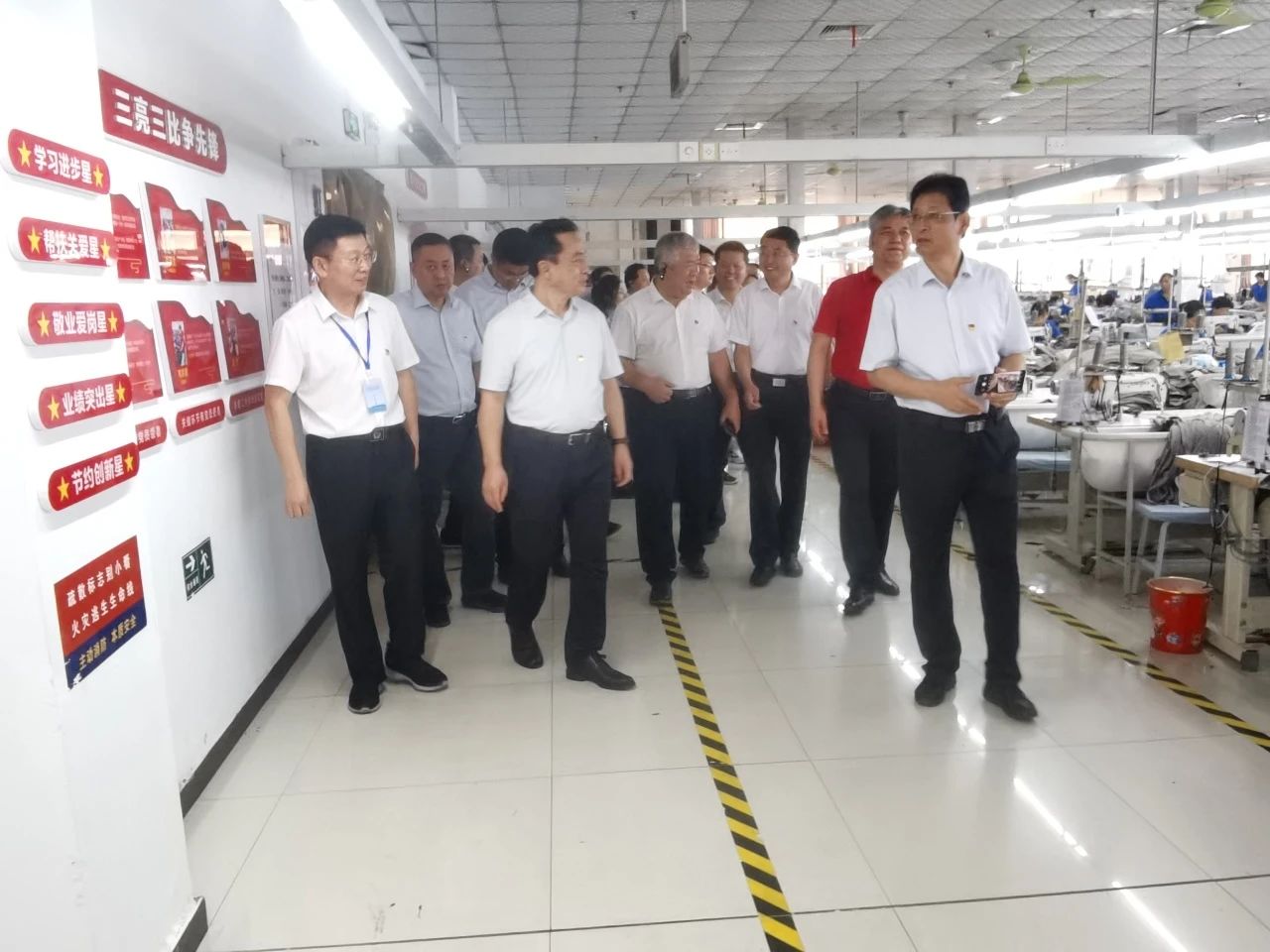 當(dāng)前位置:首頁 > 華城動態(tài)8月30日下午,濟寧市個體私營企業(yè)黨建工作現(xiàn)場會與會領(lǐng)導(dǎo)在省市場監(jiān)管局個體私營經(jīng)濟發(fā)展促進處三級調(diào)研員賈祥峰,濟寧市市場監(jiān)管局黨組書記、局長周慶華帶領(lǐng)下到濟寧華城百靈服飾有限公司觀摩指導(dǎo)工作?h委常委、政法委書記付天平,縣市場監(jiān)管局局長陳圣渠,縣委組織部副部長王沖,軍屯鄉(xiāng)黨委書記韋可等陪同調(diào)研。