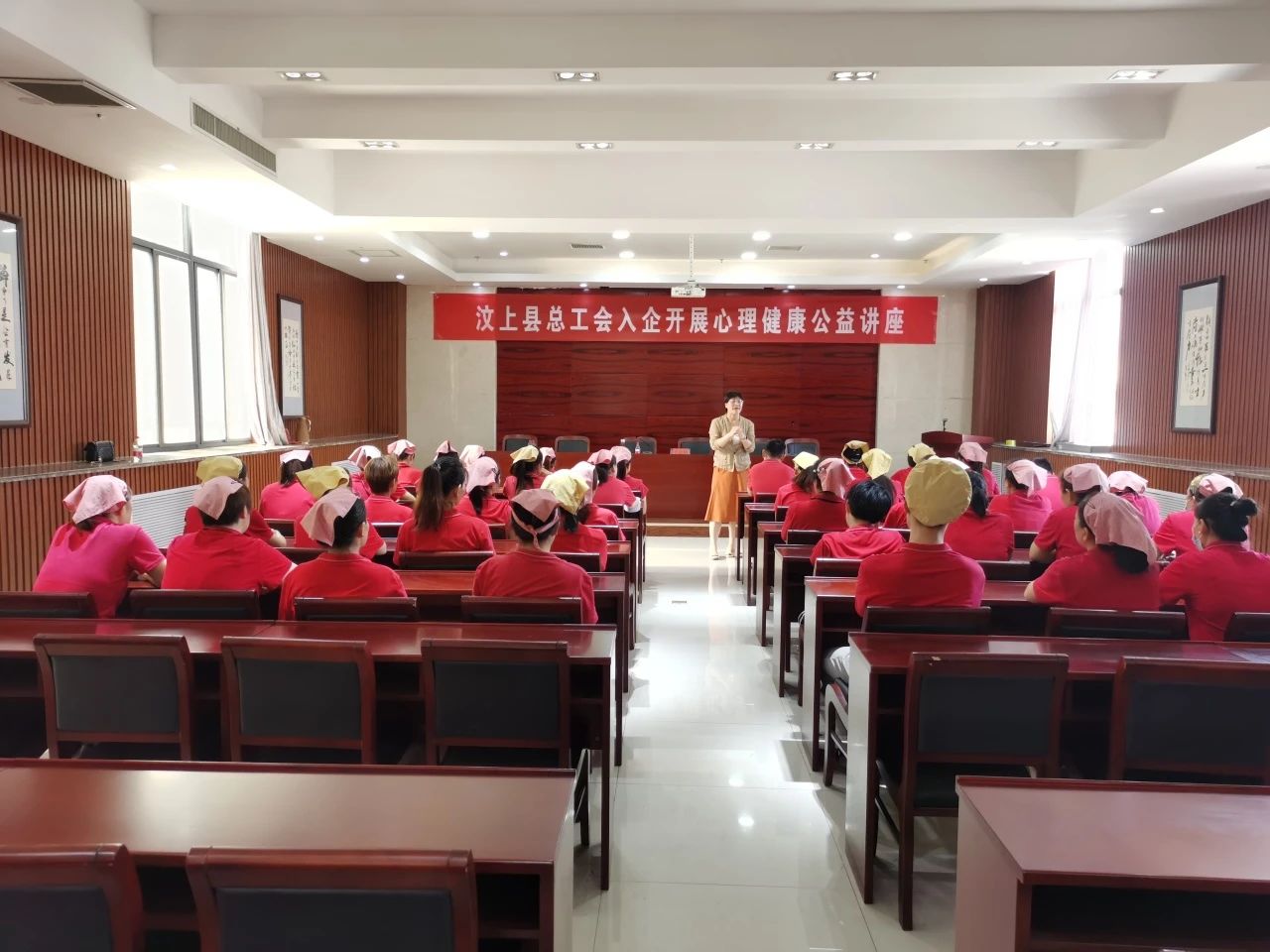 當前位置:首頁 > 華城動態(tài)為進一步普及心理健康知識,引導職工樹立積極健康心態(tài),促進職工身心健康,9月1日,汶上縣總工會前往濟寧華城百靈服飾有限公司開展職工心理健康講座。本次講座邀請縣心理學會發(fā)起人、國家二級心理咨詢師吳德靜老師前來授課,公司60余名一線管理者參加了此次講座。