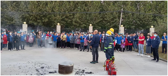 所有人員在辦公樓前集合,各車(chē)間、班組清點(diǎn)人數(shù)。企管李偉偉進(jìn)行消防安全知識(shí)講解,如何預(yù)防火災(zāi)、撲救初起火災(zāi),面對(duì)突發(fā)事件的自救、他救能力,如何正確使用滅火器等注意事項(xiàng),然后員工進(jìn)行滅火實(shí)際操作。