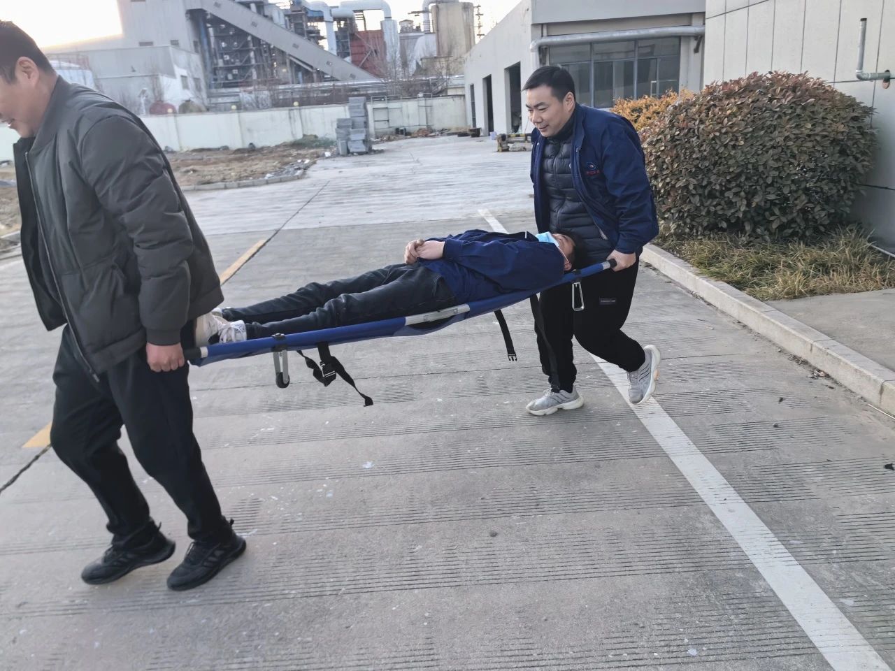 醫(yī)療人員立即撥打120與急救中心聯(lián)系,對傷員進行簡單的救治,扶出現(xiàn)場送往醫(yī)院;救援人員劉琨利報告總指揮,一人受輕傷,對其進行簡單救治后已送往醫(yī)院,其他人員已全部安全撤離;最后對現(xiàn)場進行恢復,進行安全檢查,此次應急演練結束。