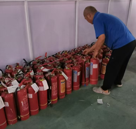 汗水,在晨光中閃耀,成為安全守護的見證。同事們不辭辛勞,穿梭于車間之間,小心翼翼地將即將過期的滅火器一一收集,匯聚成一股守護的力量。
