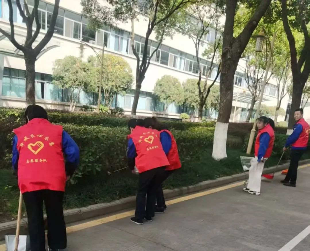 有的手持掃把,清理道路上的落葉和紙屑;有的撿拾樹木中間的垃圾和煙蒂;有的在角落中清除平時遺棄的廢物。大家干得熱火朝天,臉上都洋溢著滿意的微笑。