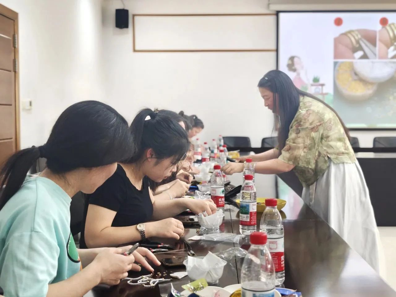在精彩的講座結(jié)束之后,緊接著是一場(chǎng)沉浸于古典韻味的“非遺壓襟”體驗(yàn)活動(dòng),讓企業(yè)員工們仿佛穿越回古代,領(lǐng)略傳統(tǒng)文化的非凡魅力;顒(dòng)伊始,佳子老師向員工們深入講解了“壓襟”這一非物質(zhì)文化遺產(chǎn)的起源和制作特色。在制作中,通過(guò)佳子老師的悉心指導(dǎo),大家從選擇材料的順序、構(gòu)思設(shè)計(jì)到組裝,每一步都充滿(mǎn)了樂(lè)趣和挑戰(zhàn)。