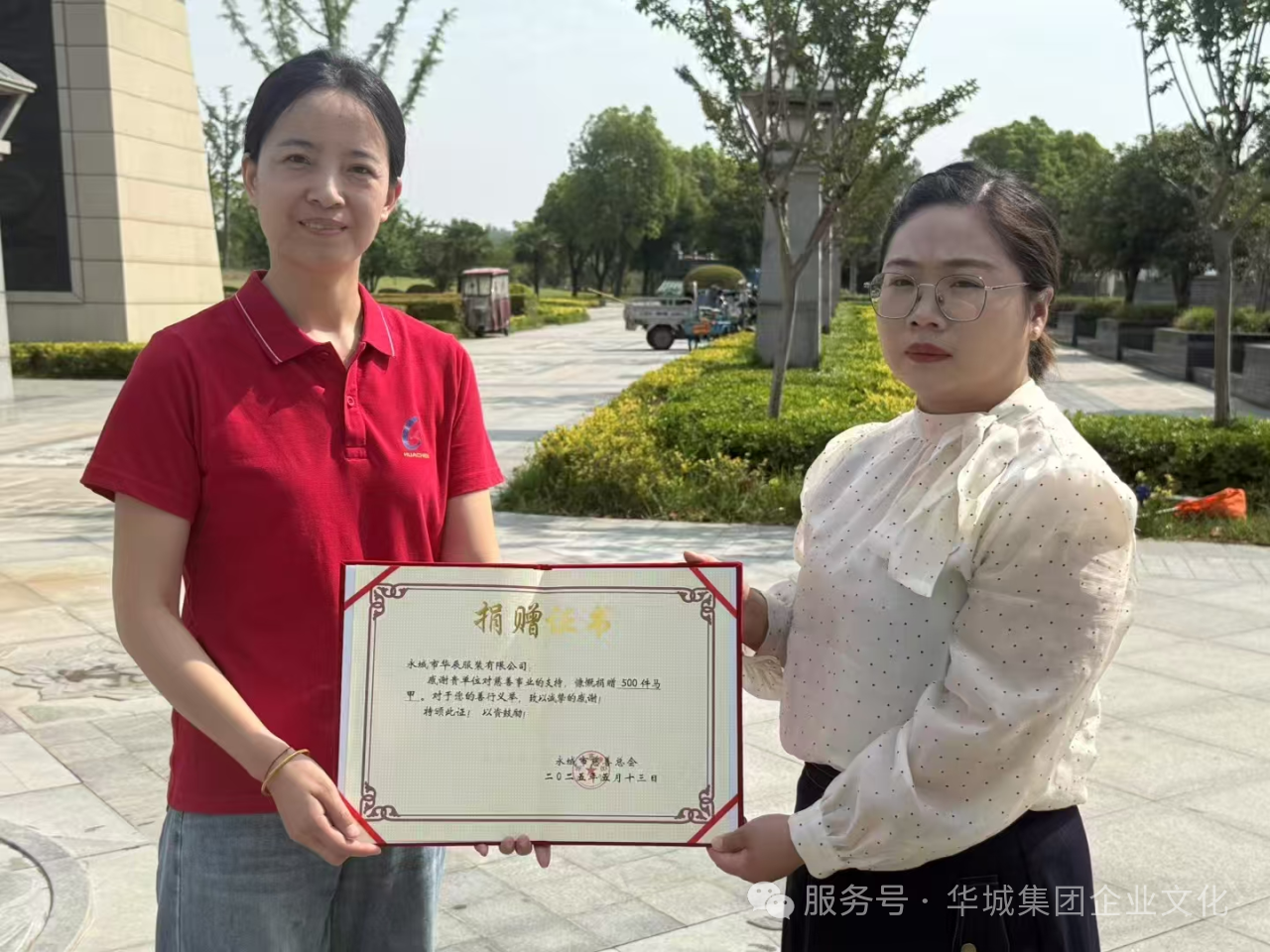 當前位置:首頁 > 華城動態(tài)5月14日清晨,朝陽初綻,微風輕拂,華辰服裝廠工會主席劉莉帶領企業(yè)愛心團隊,與永城市慈善總會攜手開展了一場公益捐贈活動,為園林環(huán)衛(wèi)工人們捐贈反光馬甲,用實際行動為他們的工作安全保駕護航。作為扎根永城的企業(yè),華辰服裝廠始終秉持“取之于社會,回饋于社會”的理念,將社會責任深植于企業(yè)文化之中。我們深知,企業(yè)的每一步成長都凝聚著社會各界的信任與支持。 因此,華辰人始終以感恩之心踐行公益,用實際行動傳遞溫暖。