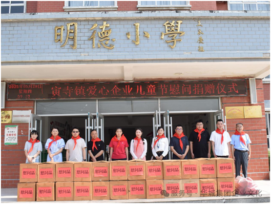當(dāng)前位置:首頁(yè) > 華城動(dòng)態(tài)5月29日,在寅寺鎮(zhèn)鎮(zhèn)政府領(lǐng)導(dǎo)陪同下,華城好兄妹和另外幾家企業(yè)共同來(lái)到寅寺鎮(zhèn)中心小學(xué),為孩子們送去兒童節(jié)禮物。校長(zhǎng)帶領(lǐng)孩子們熱烈地歡迎我們的到來(lái)。孩子們?yōu)槲覀儽硌萘宋璧浮痘ü魑枋⑹馈。表演時(shí),他們的臉上充滿歡樂(lè),色彩繽紛的花棍在孩子們手中熟練地飛舞著。舞蹈表演完后,在校長(zhǎng)的安排下,孩子們高興地為鎮(zhèn)領(lǐng)導(dǎo)和我們企業(yè)代表戴上鮮艷的紅領(lǐng)巾。